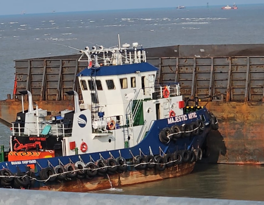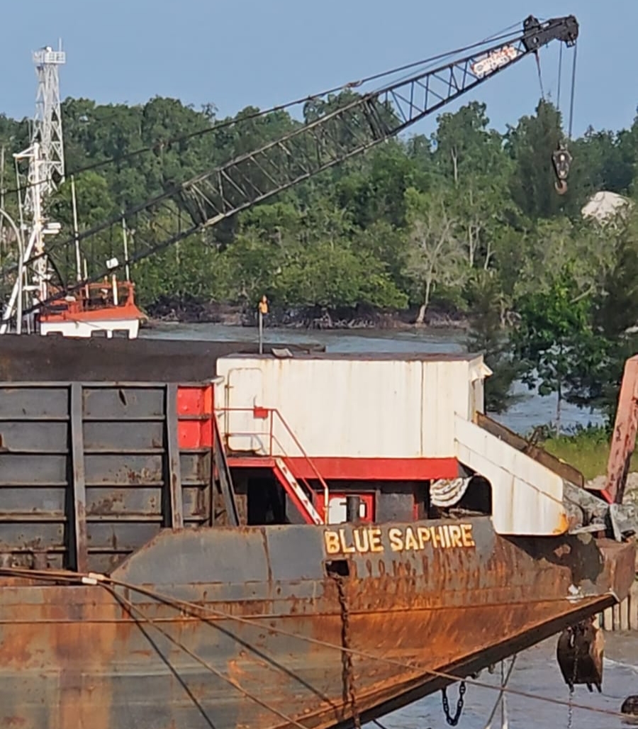 Diduga Kapal Tongkang BLUE SAPHIRE bersandatlr di areal Jembatan Emas usai membawa Batu Bara ini tanpa awak.